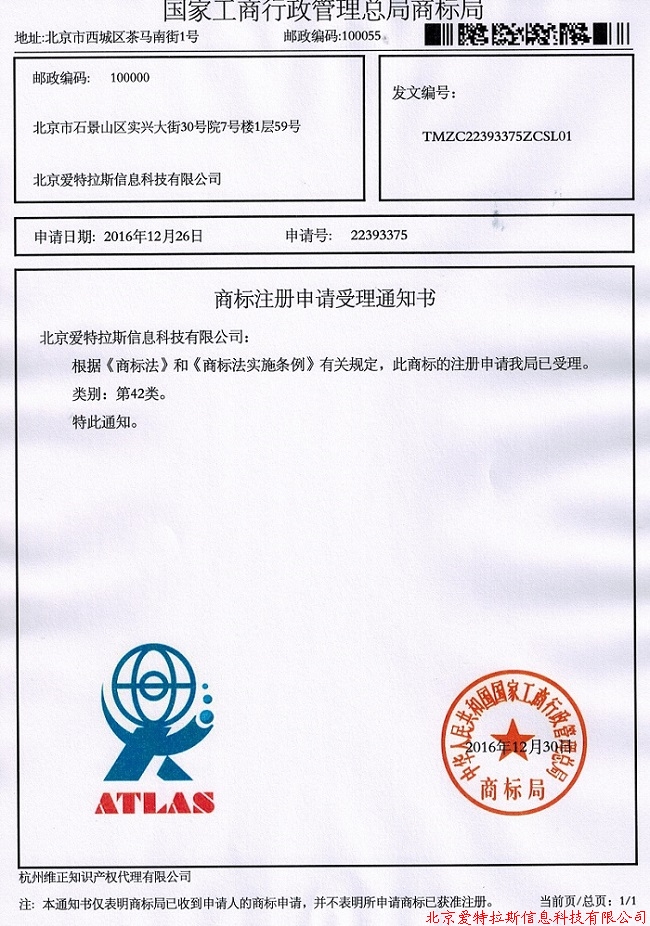 此次商標的成功注冊是我司品牌戰略中具有重要意義的一步,是塑造公司品牌形象的有力舉措,我們愛(ài)特拉斯全體員工將會(huì )通過(guò)不懈努力來(lái)維護我們的品牌信譽(yù);不斷提高客戶(hù)對我們品牌的認可度,為客戶(hù)提供真誠、有品質(zhì)的可靠產(chǎn)品,以實(shí)現我們企業(yè)“用智慧地圖創(chuàng )造生活,集空間信息驅動(dòng)未來(lái)”的價(jià)值觀(guān)念。