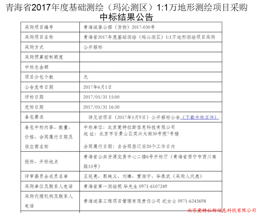 近日,在青海省第一測繪院實(shí)施的“青海省2017年度 基礎測繪(瑪沁測區)1:1萬(wàn)地形測繪項目采購”我們一舉中標。