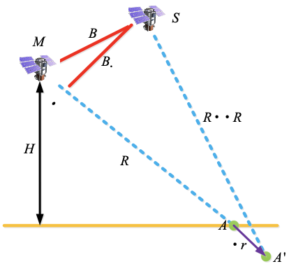 近年來(lái),由于具備高精度形變監測能力,InSAR(Interferometric Synthetic Aperture Radar,合成孔徑雷達干涉測量)技術(shù)得到了迅猛的發(fā)展。InSAR技術(shù)屬于非接觸式測量的范疇,其形變測量基本原理示意圖如下圖所示。M和S分別為形變發(fā)生前后SAR衛星的位置。一般情況下,兩顆衛星不完全重軌,存在空間基線(xiàn)B。在形變發(fā)生前,目標點(diǎn)位于位置 ,形變發(fā)生后,目標點(diǎn)移動(dòng)到位置 。當從干涉相位中剔除模擬的地形相位后,目標點(diǎn)在視線(xiàn)(LOS)方向的形變量 與形變相位 的關(guān)系可以表示為: