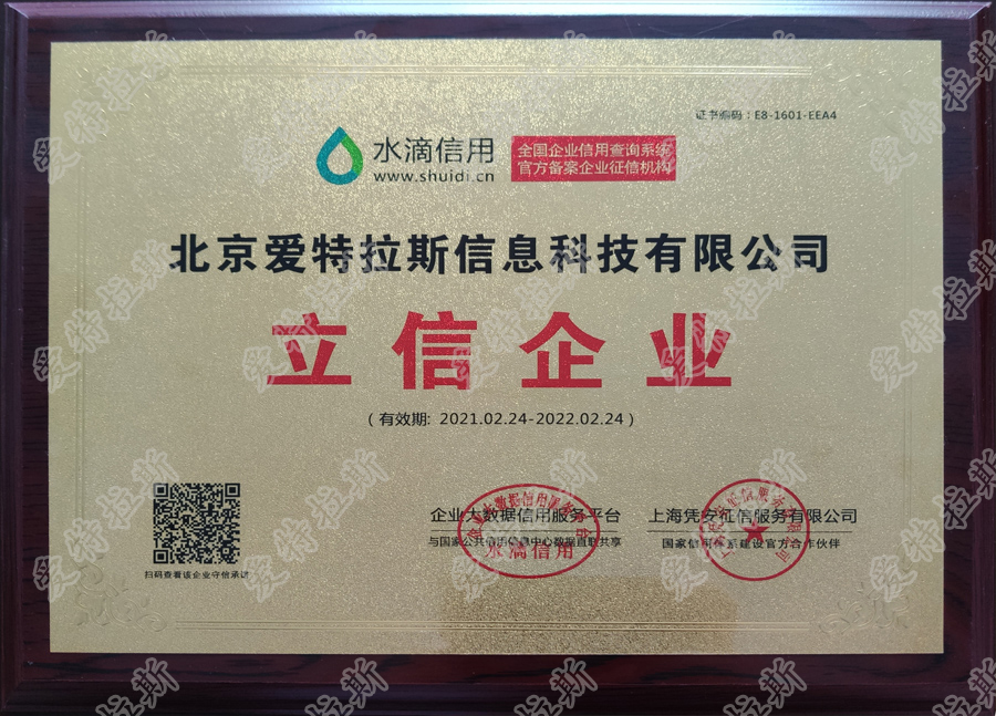 2021年2月24日,經(jīng)過(guò)嚴格的資質(zhì)審核之后,我司獲得了“企業(yè)大數據服務(wù)平臺”以及“上海憑安征信服務(wù)有限公司”聯(lián)合認證的水滴信用立信企業(yè)牌匾。