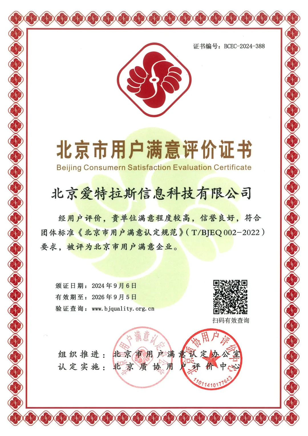 喜報 | 愛(ài)特拉斯榮獲北京市用戶(hù)滿(mǎn)意企業(yè)
